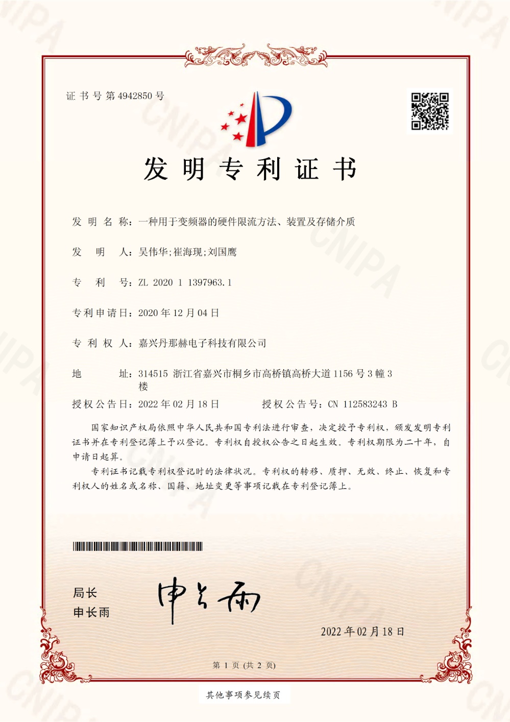 专利证书